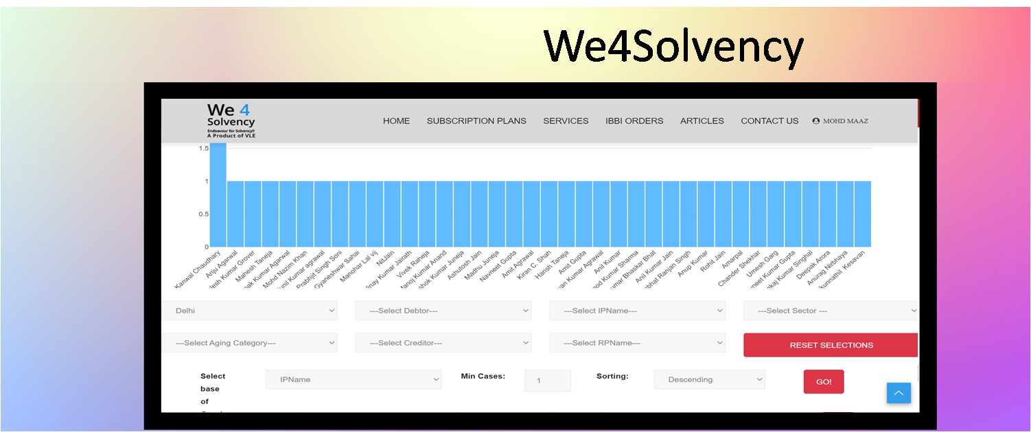 WeForSolvency is a technical tool to facilitate Insolvency Professionals and their ecosystem primarily lawyers, forensic auditors, bankers, audit firms, resolution advisers in understanding the existing cases filed with National Company Law Tribunal.