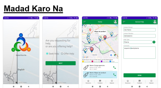 Madad Karo Na is a mobile application that uses GPS location to identify help seekers and helpers in the same geographical area. Help seekers can put in a request for different categories of help which can be responded to by people who are willing to offer help.